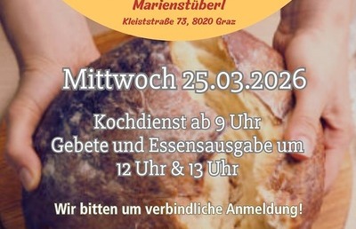 Fakultätsgottesdienst im MarienstüberlGemeinsam kochen - teilen - genießen Wir kochen gemeinsam im Marienstüberl (Kleiststraße 73, 8020 Graz) für Menschen, die sich ein Essen nicht leisten...