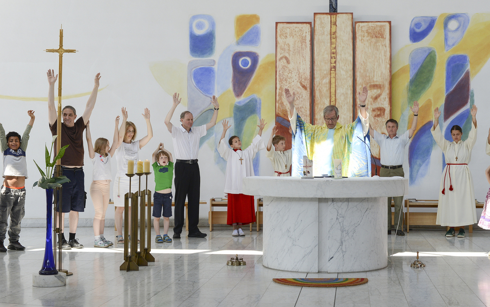 Gottesdienst zum Dreifaltigkeitssonntag und Ausstellungseröffnung Reichtum versus Armut in der Pfarre Schutzengel.