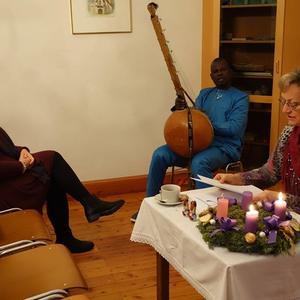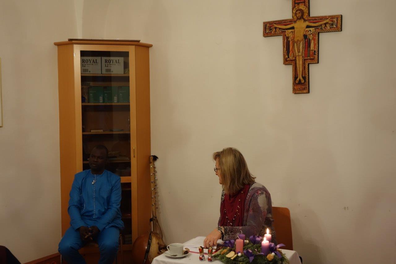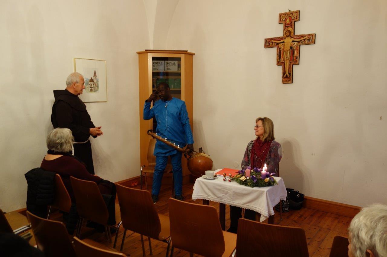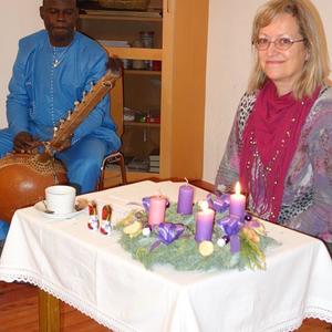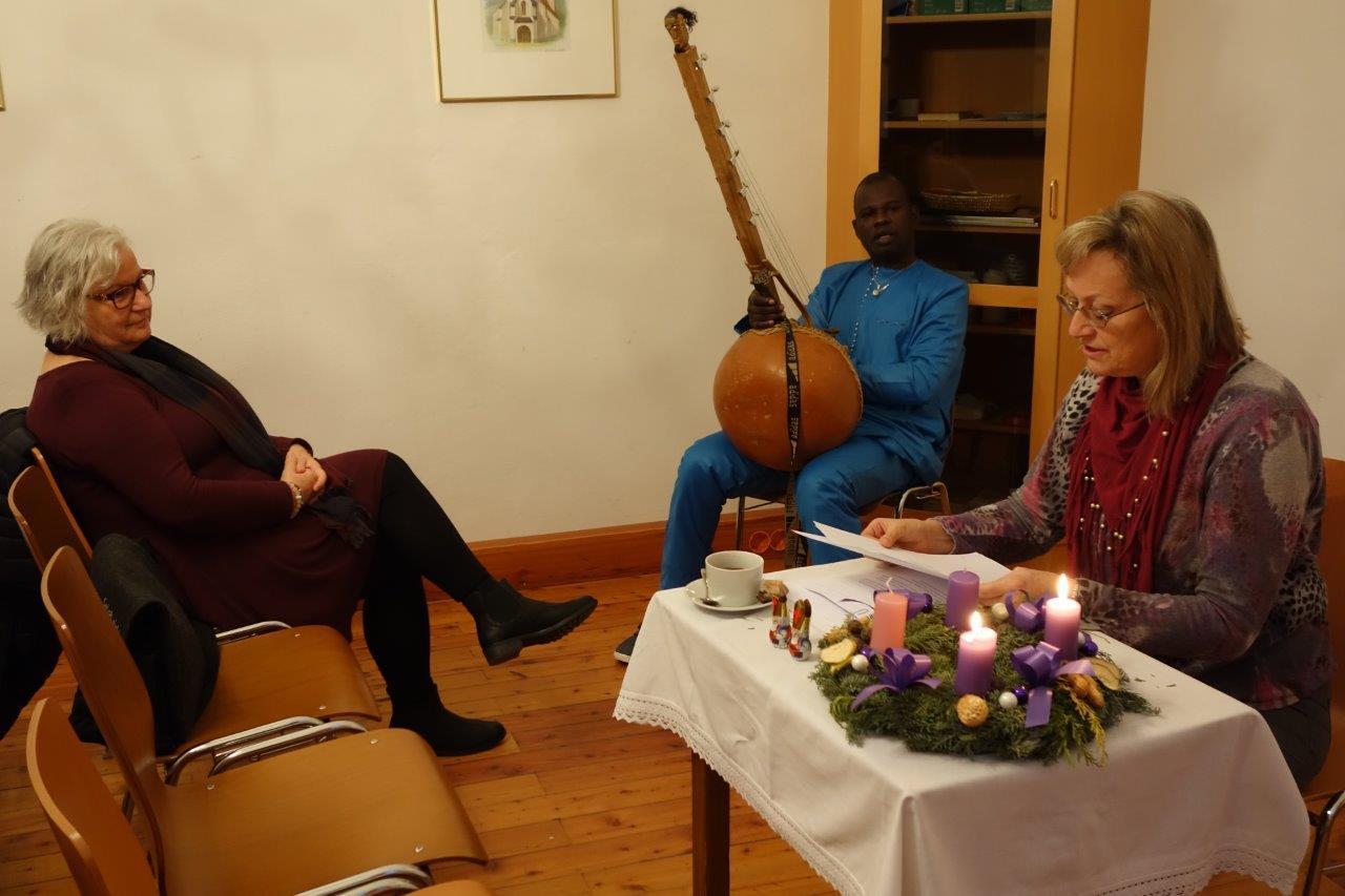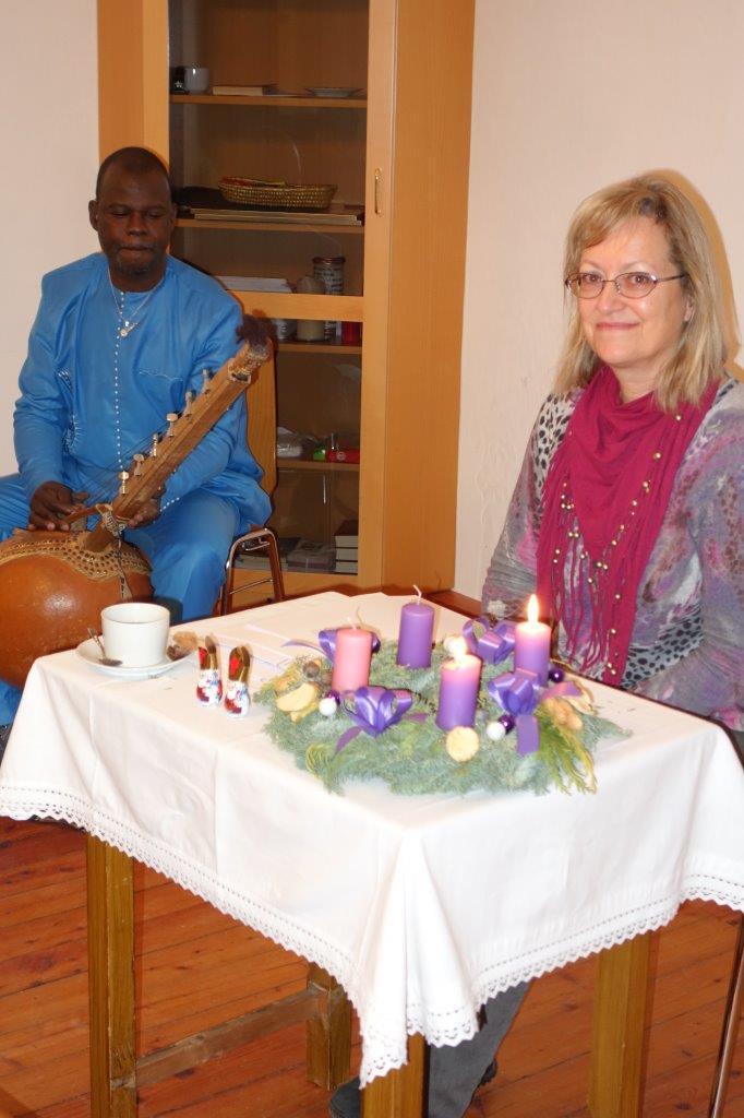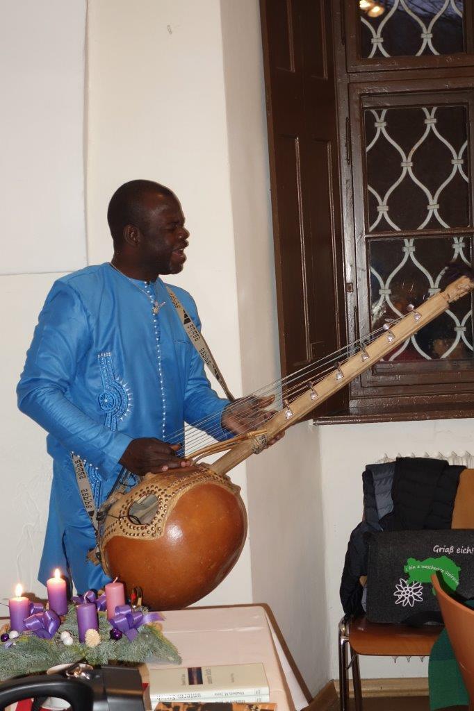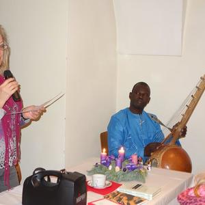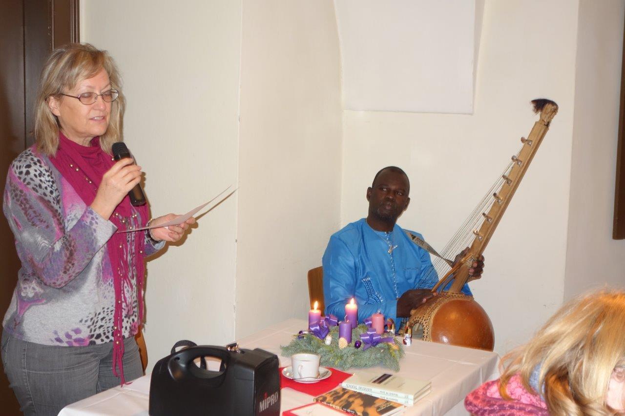 Pfarrsaal und in der ehemaligen Bibliothek eine stimmungsvolle Adventlesung. Frau Jursa lebte in afrikanischen und asiatischen Ländern sowie in Bosnien. Sie hat fünf Bücher in den Kategorien Sachbuch, Lyrik und Kurzprosa veröffentlicht und in Literaturzeitschriften und Anthologien in Österreich, Deutschland und Russland publiziert.Musikalisch wurde sie von Herrn Seidu Traaore aus Burkina Faso (Afrika) wunderbar begleitet.