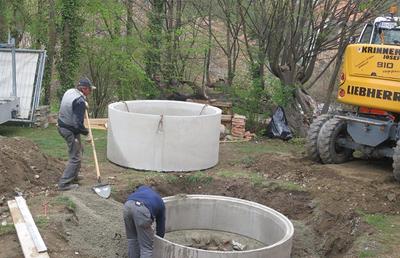 Arbeiten am Brunner im Klostergarten