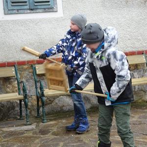 Ihr Ratschenspruch am Karfreitag lautete heuer: "Wir ratschen, wir ratschen zum Englischen Gruß, den jeder Christ beten muss. Kniet`s nieder, kniet`s nieder auf eure Knie, bet`s drei Vaterunser und drei Avemarie!"