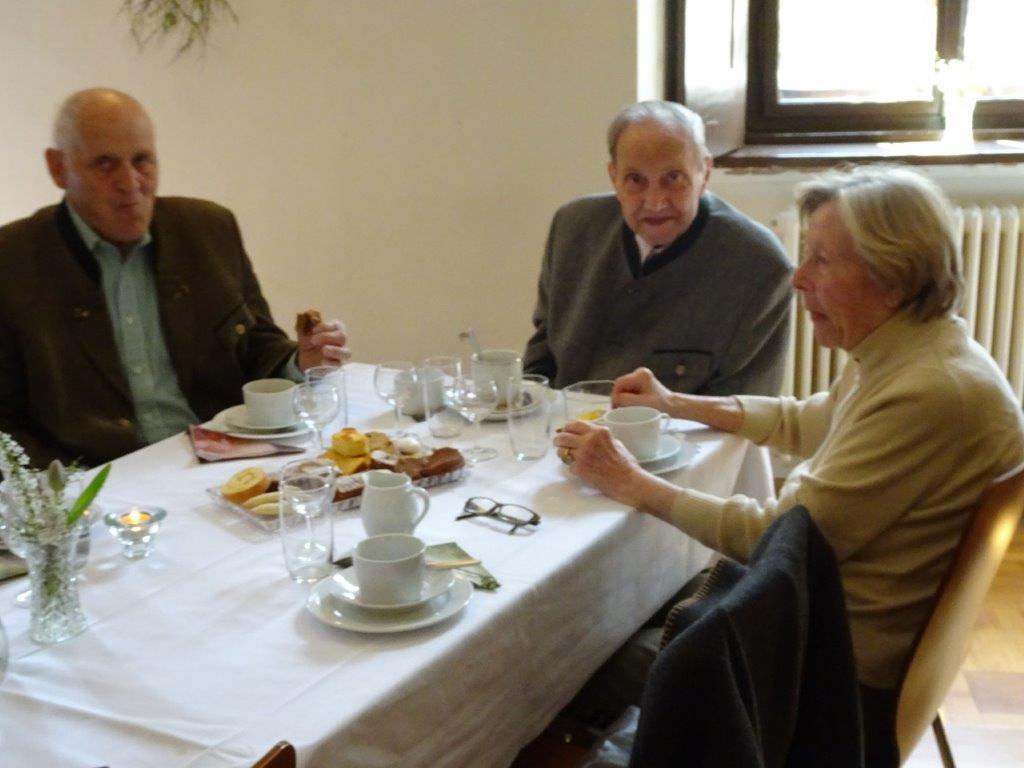 Die launige Begrüßung nahm um 14.30 Uhr Hausherr Pater Simon vor. Anschließend kredenzten die Mitglieder der Katholischen Frauenbewegung köstliche Mehlspeisen und Kaffee auf. Später servierten sie leckere Brötchen, Wein und Wasser. Zwischendurch sorgte das Geschwister-Trio Zöhrer mit ihrer schönen Musik für eine tolle Stimmung. Die Anwesenden unterhielten sich bis zum frühen Abend glänzend. Die älteste Jubilarin war mit 93 Jahren Maria Trieb aus Rothleiten, ältester Gast bei den Männern war Rupert Windisch aus Gams mit 97 Jahren.