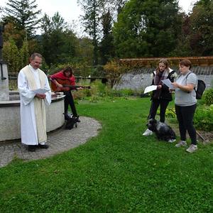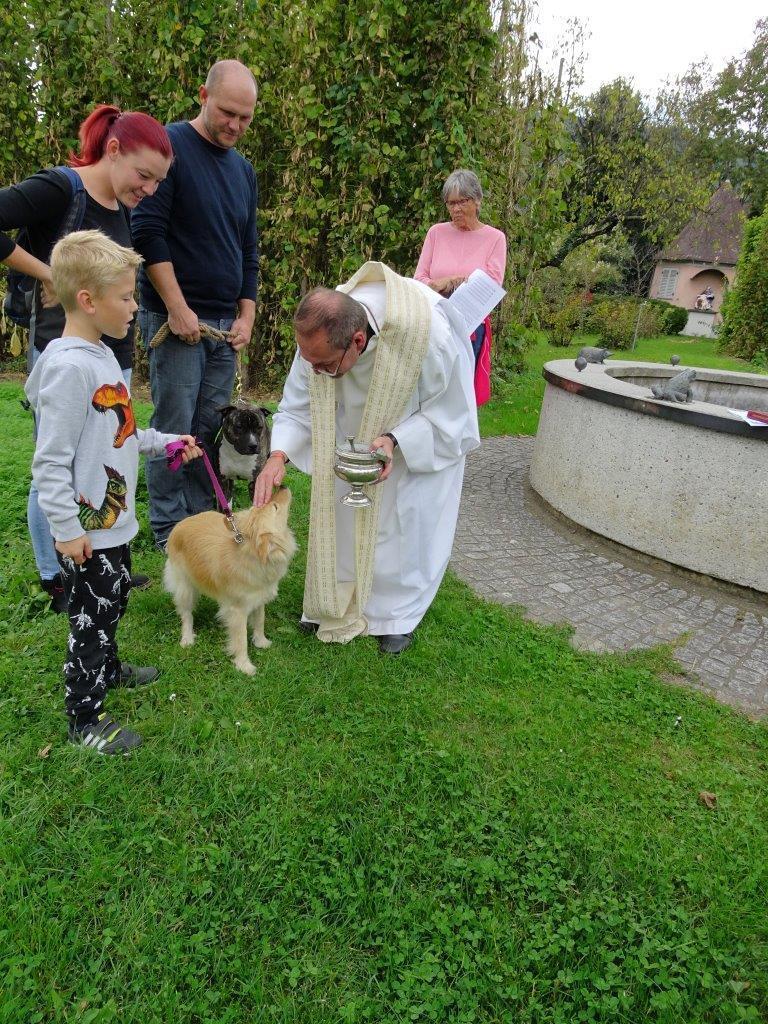 Die feierliche Tiersegnung nahm am Sonntag, dem 7. Oktober 2018, um 15 Uhr, beim Franziskusbrunnen im Klostergarten erstmals Pfarrer Mag. Ronald Ruthofer vor. Die Tiersegnung orientiert sich am Gedenken des heiligen Franz von Assisi, dem die Wertschätzung der Schöpfung und der achtsame Umgang mit den Mitgeschöpfen ein besonderes Anliegen war.