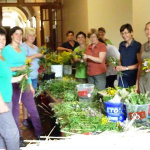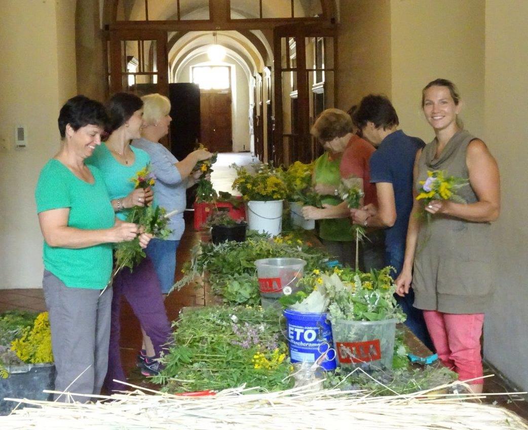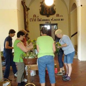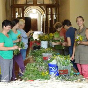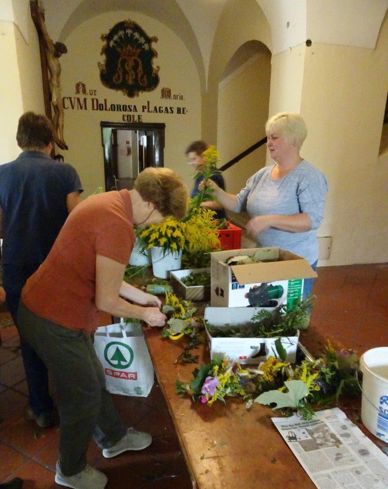 Kräuterbüschelbinden im Klostergang am 14. August 2018