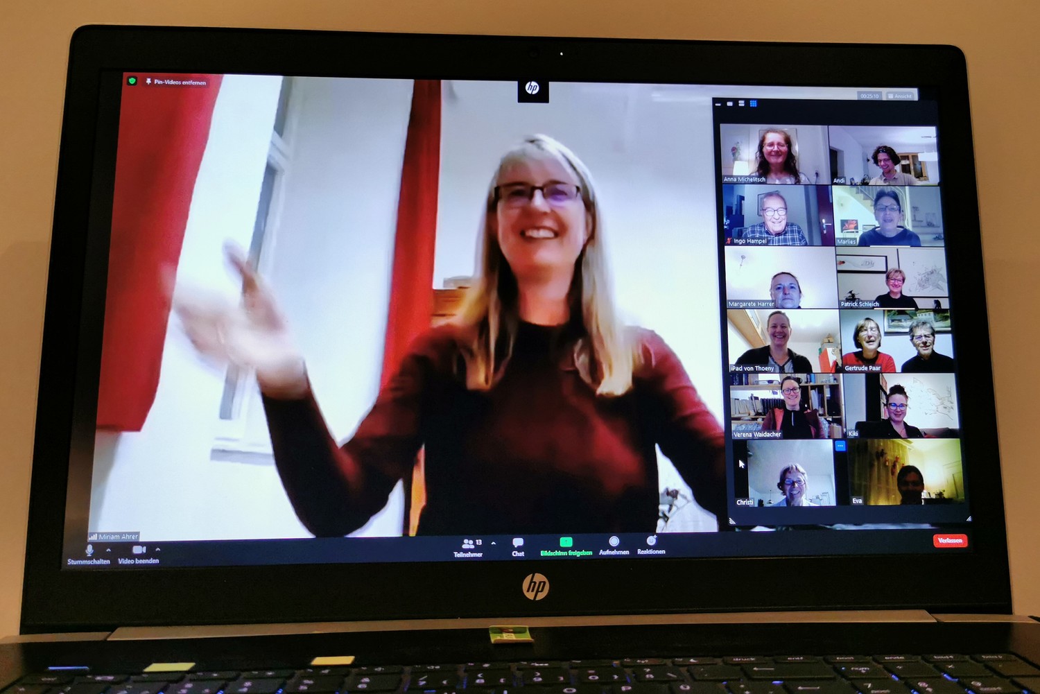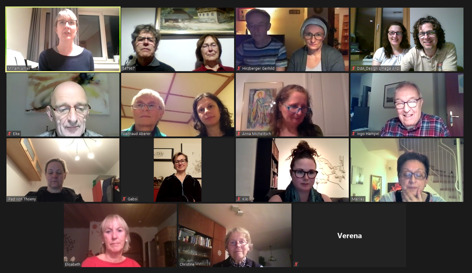Um den Kontakt nicht ganz zu verlieren, trafen wir uns als Ersatz zu Online-Chorproben in Form von Videokonferenzen. Zwar ist das gleichzeitige Singen wegen der verschiedenen Übertragungsgeschwindigkeiten des Internets nicht möglich, aber mittels Vor- und Nachsingen kann man doch recht gut alte Stücke wiederholen oder auch einfache neue Lieder einstudieren. Besonders während der Adventzeit konnten wir auf diesem Weg sehr stimmungsvoll miteinander singen!