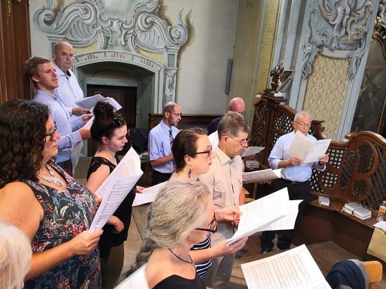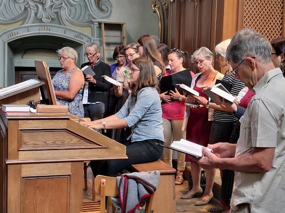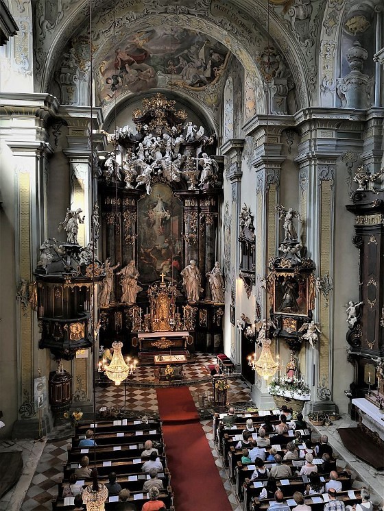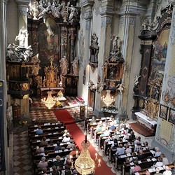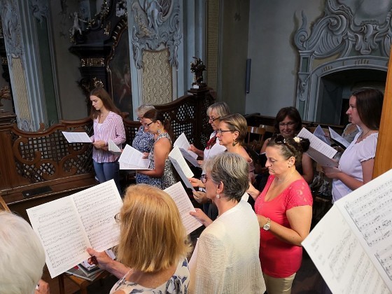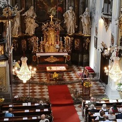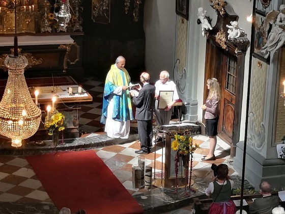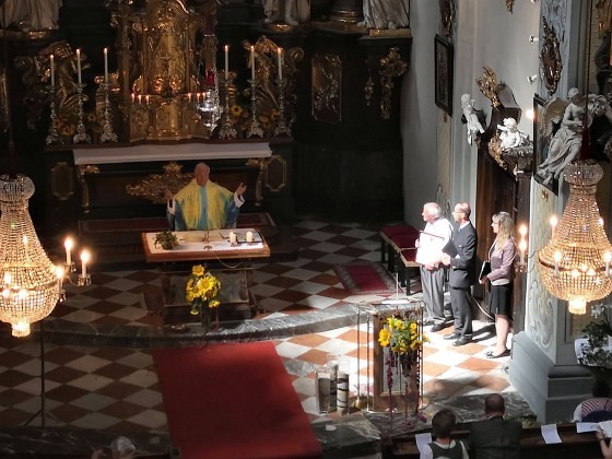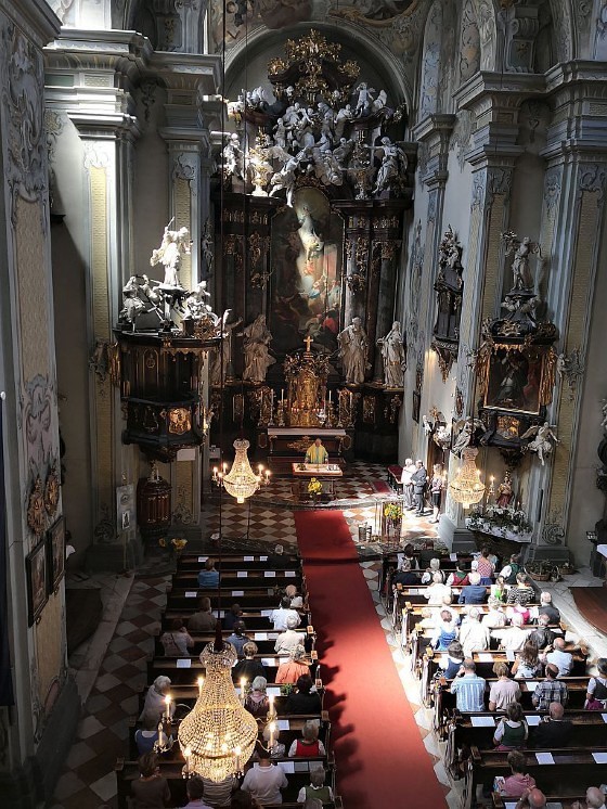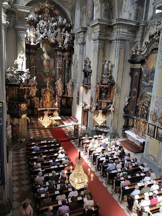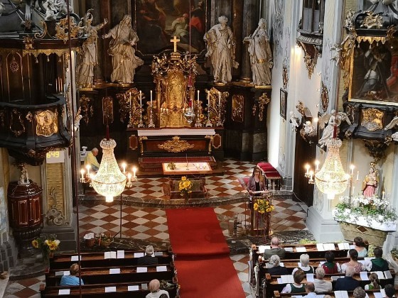 Tragischerweise wurde der Feiertag vom plötzlichen Tod unseres langjährigen Organisten und Chorsängers Franz Grasmugg überschattet. So erhielt das abschließende Segenslied, das eigentlich als Gruß und Dank des Chors an unseren scheidenden Pfarrer Pater Simon gedacht war, eine besonders tröstliche Bedeutung. Das für das 800-Jahr-Jubiläum der Diözese Graz-Seckau komponierte Stück verwendet im Refrain einen Text von Edith Stein: „Ohne Vorbehalt und ohne Sorgen leg´ ich alle Zeit in deine Hand“.
