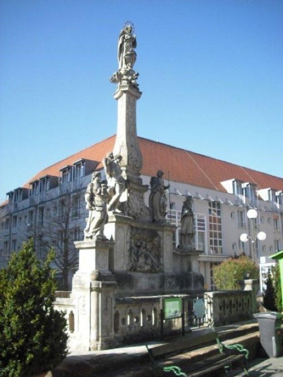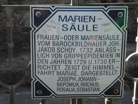 An der Rückseite der Mariensäule stehen zwei lateinische Inschriften, die man so übersetzen kann: