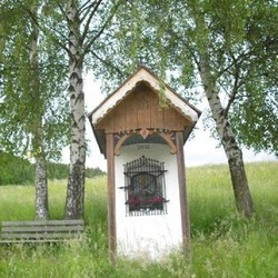 Das Gnadenbild im Sigl-Kreuz ist von zwei farbenprächtigen Maria- und Jesus-Statuen flankiert und die Nische ist mit einem kleinen Holzkreuz, Blumenstöcken und Kerzen liebevoll geschmückt. Neben dem Sigl-Kreuz steht eine gemütliche Holzbank, die zum Verweilen und Besinnen einlädt.