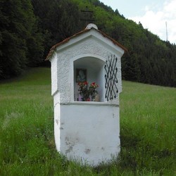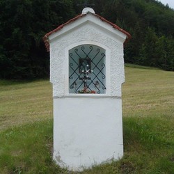 Dieses Zeichen des Glaubens steht am rechten Ufer des Tyrnauer Baches – kurz vor der Ortschaft Schrems – auf einer Wiese, die früher auch „Kreuzacker“ genannt wurde. Es beherbergt hinter einem kleinen, verglasten Gitter ein schönes Marienbild und Statuen von verschiedenen Heiligen.