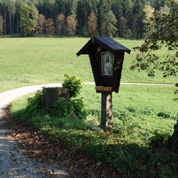 Ursprünglich stand dieses religiöse Kleindenkmal zwischen zwei mächtigen Linden und beherbergte eine schöne ein Meter hohe Skulptur von Maria mit dem Jesuskind im Arm, geschmückt mit Seidenblumen, Kerzen und Gestecken.