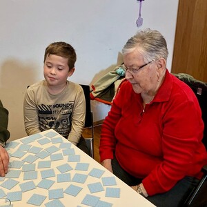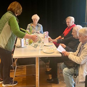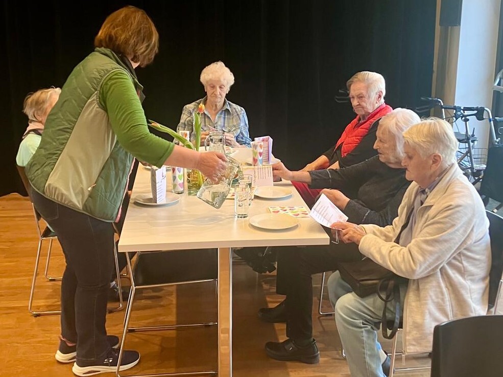 Frau Michaela Moser und Frau Susanne Schreiner überraschten die anwesenden Senioren heute mit dem Besuch einiger Kinder aus der Nachmittagsbetreuung. Der Raum war gefüllt mit lebendiger und fröhlicher Stimmung. Beim gemeinsamen Spielen mit Jung und Alt wurde viel geplaudert und gelacht. Die Kuchenteller leerten sich rasch und bei Kaffee, Wein und gesponserten Säften, waren alle Gäste bestens versorgt.