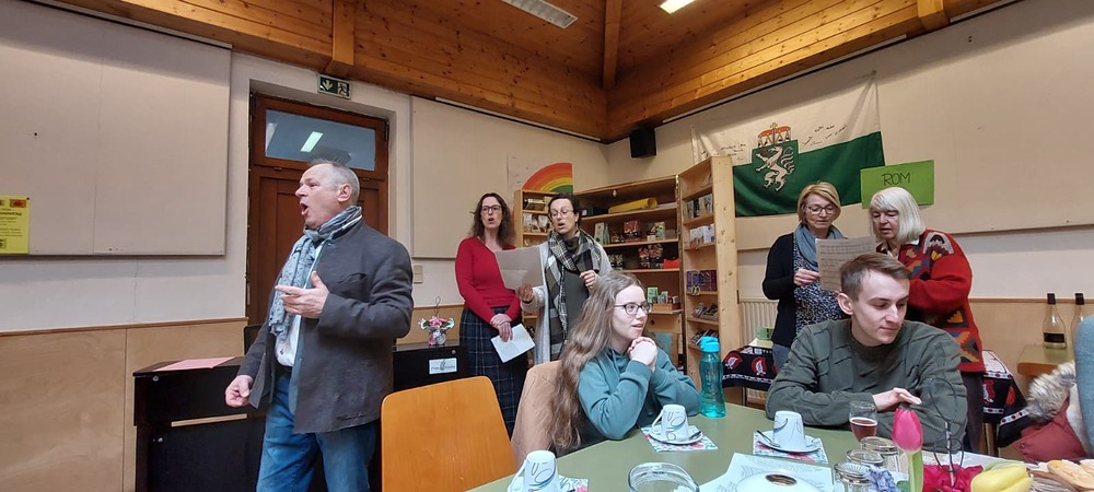 Viele folgten der Einladung und unterhielten sich gut bei Kaffee,  Kuchen und "Uhudlerprosecco" und gemeinsamen Liedern.
