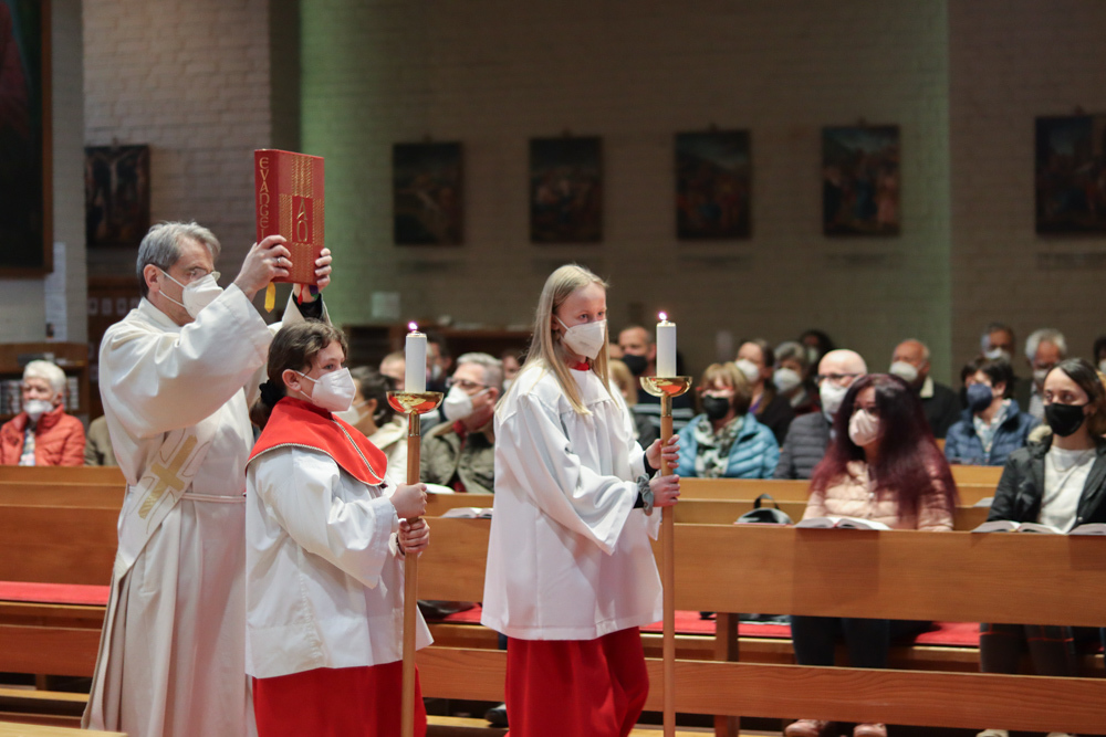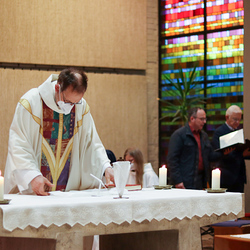 In einer etwas anders gestalteten Fußwaschung wurde jenen gedacht, die nicht oder nicht mehr am Leben der Kirche teilnehmen können oder möchten. Die Stühle blieben leer. Symbolisch für Rand- und Zielgruppen und jene Menschen, die unsere Gesellschaft mitprägen, wurden Kerzen entzündet. Als Zelebranten fungierten unsere drei Priester, drei Diakone sowie alle Pastoralreferentinnen und Referenten, welche den Sendungsauftrag im Seelsorgeraum Kaiserwald erfüllen.
