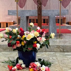 Nach der Kreuzverehrung mit bereitgestellten wunderschönen Blumen schloss die Feier mit dem Segen.