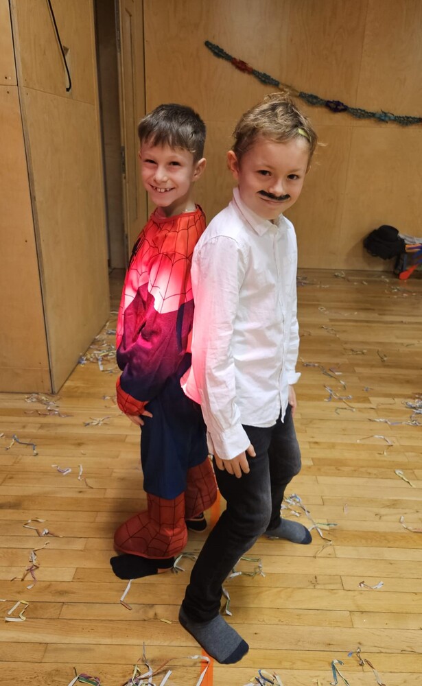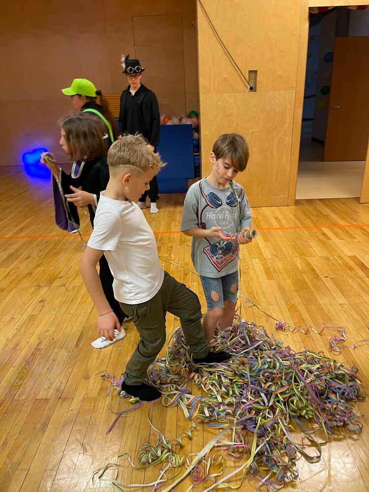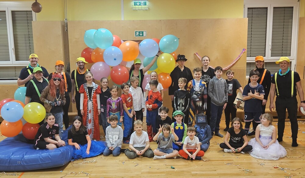 Die Faschingsparty besuchten 27 Kinder. 7 Betreuer:innen setzten sich mit ihrer ganzen Kraft ein. Wir sagen DANKE!